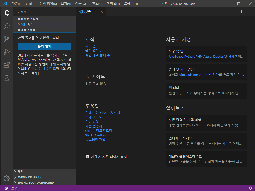 설치 완료 후 재시작하면 한글이 적용됩니다.